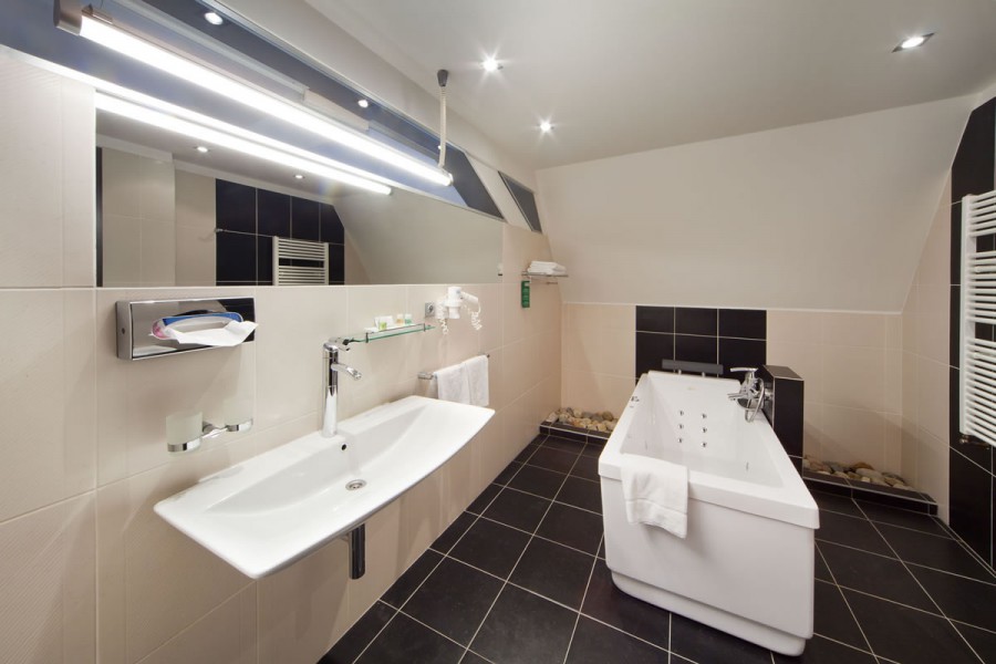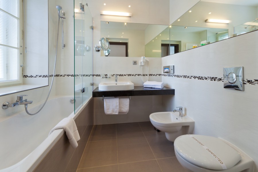 L'hôtel dispose de 34 chambres spacieuses dont 1 appartement et 1 appartement résidentiel. Toutes les chambres ont été créées en style moderne avec les aménagements de luxe tout en respectant les murs d'origine des bâtiments. Toutes les chambres sont équipées de baignoire, WC, téléphone direct, TV satellite, coffre-fort, accès Internet (WI-FI gratuit en chambre), sèche-cheveux et minibar. Toutes les chambres sont bien sûr équipées de climatisation. Les meubles massifs ont un revêtement respectueux de l'environnement sans l'utilisation de vernis. Vous pouvez vous détendre sur des lits confortables dont les dimensions vont jusqu'à 180 × 200 cm. Toutes les chambres offrent un confort maximal et mettent l’accent sur la sécurité - cartes à puce pour l’accès aux différentes zones, nouvelle génération d’alarmes incendie.